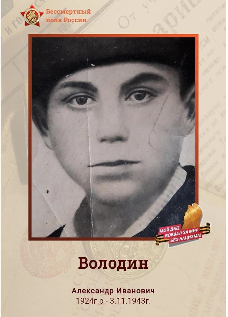 ![]() Володин Александр Иванович, родился в село Грибовка, Старомаиновский район , Ульяновской области в 1924г. Погиб 3 Ноября 1943г . Похоронен в г . Калуга на общевойсковом кладбище , могила номер 237. |